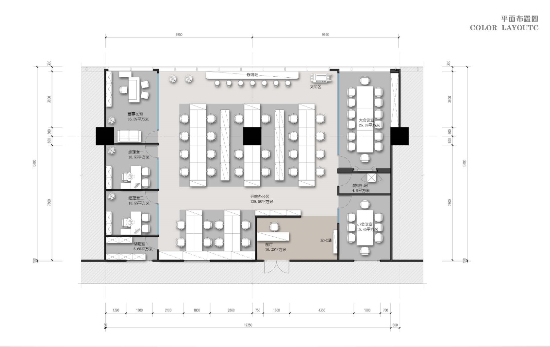 为打造信息化,采用科技风,以线条的形势凸显形象,空间错落分布,主打明亮宽阔。